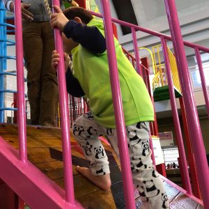 珍しい遊具があり、初めはどれで遊ぼうか悩んでる様子でしたが、遊び始めると、あれもこれもと色々な遊具で楽しく遊んでいました♪