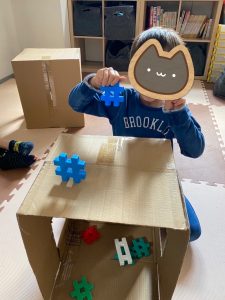 今日は段ボールを使って