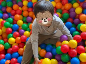 到着するなり、一面に広がるボールプールにみんな大興奮??